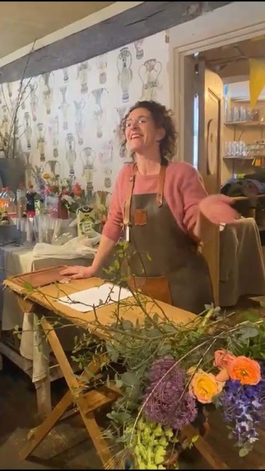Ik maak intuïtief een bloemstuk of boeket en geef daarbij het verhaal op papier mee of lees het verhaal voor tijdens het bezorgen. Bij een uitvaart is er ook de mogelijkheid dat ik het verhaal vertel tijdens de dienst, zo neem ik de nabestaanden mee op het levenspad van de overledene.
